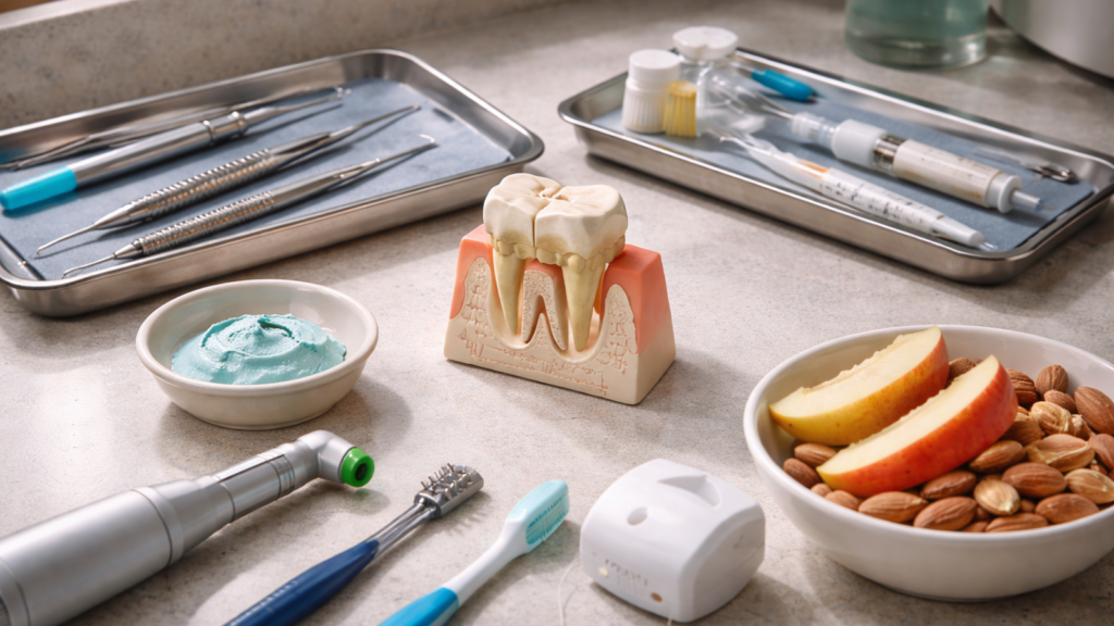 In many cases, the same appointment includes scaling and polishing to remove plaque, tartar, and surface stains. If there is heavy buildup or inflamed gums, cleaning may be staged so the dentist can measure and treat gum pockets properly. Preventive add-ons like fluoride or sealants may be recommended depending on cavity risk and age. You should also receive simple, personalized brushing/flossing guidance and diet tips to prevent the same problems from returning.