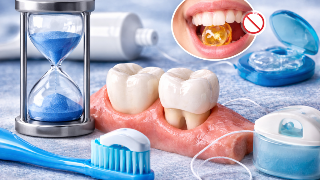 Daily care: brushing, flossing around crowns, and gum health