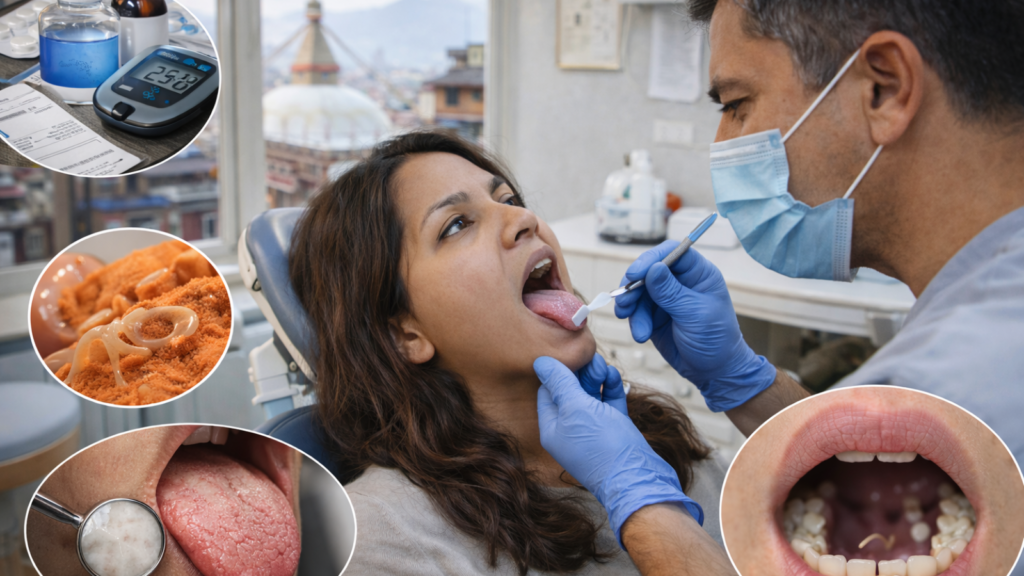 Dry mouth (xerostomia) is more than an annoying “cotton mouth” feeling, when saliva is low, your mouth loses its natural protection against cavities, gum inflammation, mouth infections, and even persistent bad breath. In Kathmandu, many patients notice dryness after starting common medicines (for allergies, blood pressure, anxiety/depression) or alongside diabetes, stress, smoking, and mouth breathing at night.