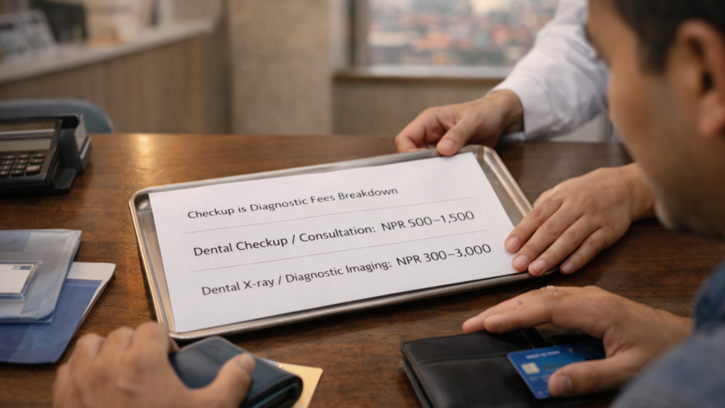 Hidden cost trap: Clinics that quote “NPR 500 checkup” often add X-rays, registration fees, and treatment planning charges at checkout. Ask for an all-inclusive first-visit price during phone booking to avoid this.