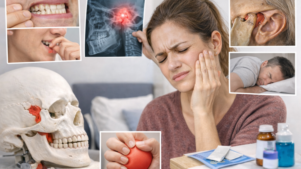 In this guide, you’ll learn the most common causes of TMJ clicking and jaw pain, like teeth grinding, stress-related clenching, disc displacement, and arthritis, plus the key symptoms that help you tell mild issues from red flags. We’ll also cover simple at-home steps that often calm flare-ups, what treatments a dentist may recommend (such as splints/night guards and physiotherapy), and when imaging or advanced care is needed.