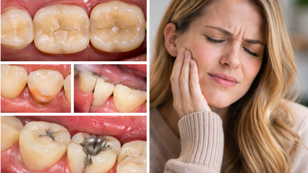 Tooth structure bears the direct impact of grinding forces, accumulating damage over months to years of untreated bruxism.