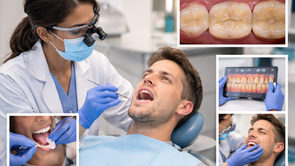 The initial dental visit at BrightSmile Dental Clinic (Putalisadak) or similar facilities should include a comprehensive oral exam checking for wear patterns and damage, muscle palpation identifying tender or overactive areas, bite assessment evaluating contacts and alignment, discussion of symptoms and their impact on daily life, and treatment recommendations with cost estimates.